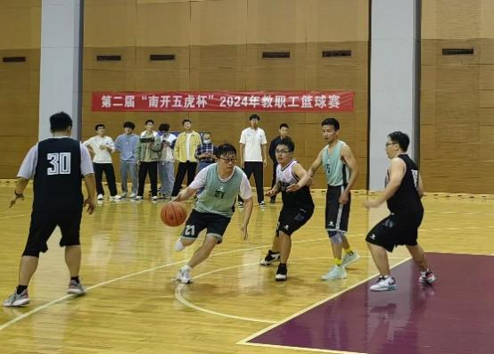 男队教工们分别与环境科学与工程学院、人工智能学院、材料科学与工程学院、计算机学院、网络空间安全学院的队伍搏杀,取得两胜两负、津南B组第三名的成绩;女队教工们经过几天的训练,顺利完成运球和投篮接力赛。参加三分球大赛的三位男教工也取得了较好成绩。