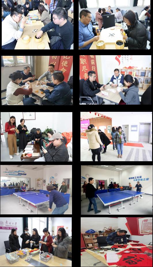赛场上,教职工们热情高涨、各展所长,尽显风采。棋类比赛中,选手们凝神静气、深思熟虑,在棋盘上排兵布阵、斗智斗勇,展现出高超的棋艺与沉稳从容的心态;乒乓球赛场上,选手们步伐灵动、挥拍迅猛,攻防转换间尽显竞技魅力与拼搏精神;“学习强国”知识竞赛中,大家反应敏捷、答题精准,充分展现了扎实的理论功底与良好的学习风貌。体验区内,老师们或挥毫泼墨书写春联福字,或专注编织中国结、绒花,在传统手工艺的创作实践中感受中华优秀传统文化的独特魅力。