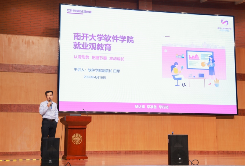 副院长田军详细解读 2026 年就业总体形势,引导学生树立理性、务实、多元的正确就业观。