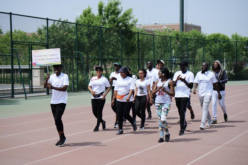 运动会上的独特风采。同学们纷纷享受着体育带给他们的快乐,2017级软件工程专业本科生孙晓冰兴奋地说:“比赛结果已不重要,我们已经在其中获得了无价的友谊财富。”最终,本科17级3队、留学生代表队、17级1队、18级3队获得团体总分前四名。