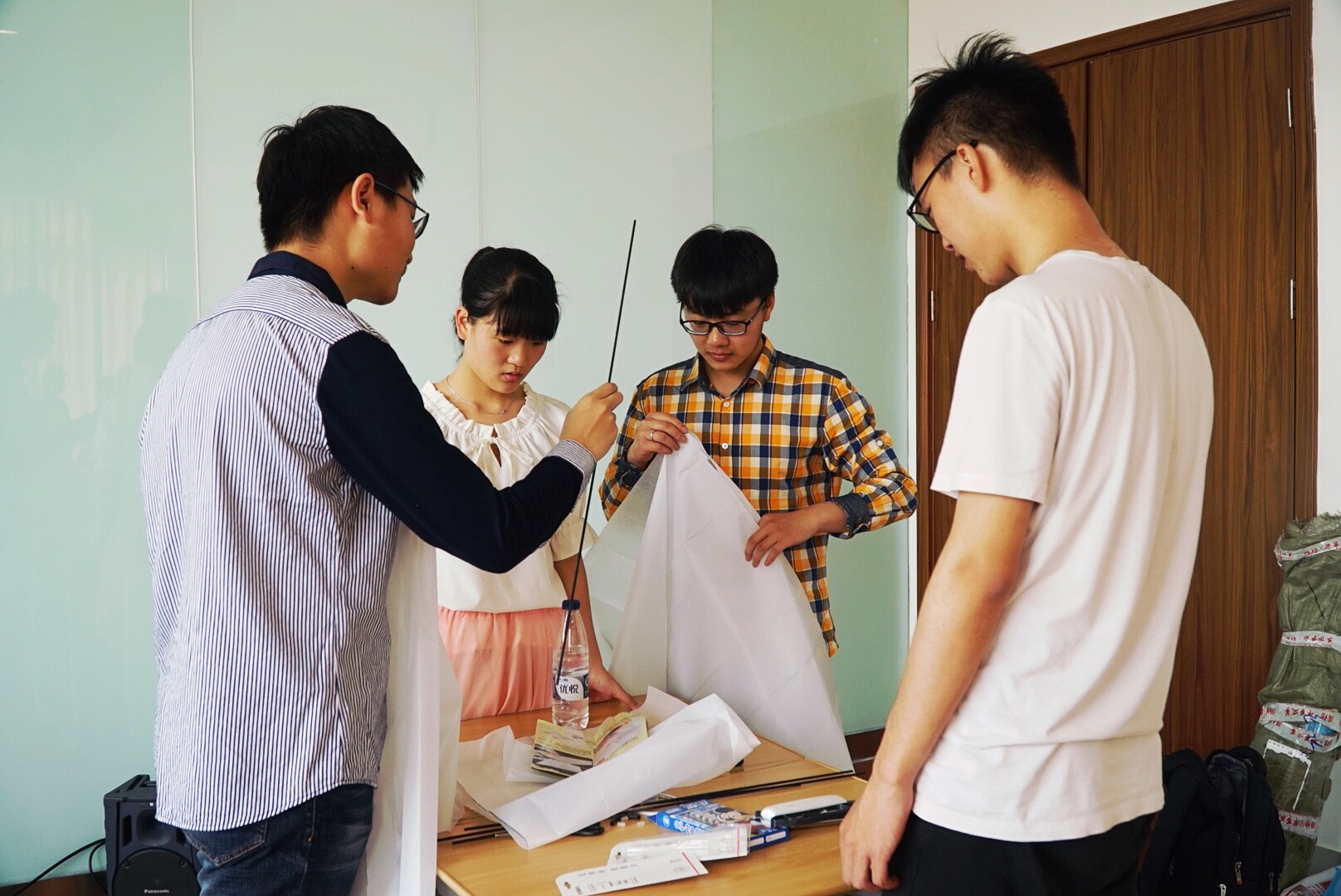 文艺部与汉语言文化学院学术部共同举办了首届“弘扬传统文化 放飞青春梦想”主题风筝大赛。同学们两两一组参与活动,共同完成制作,将风筝放飞空中。
