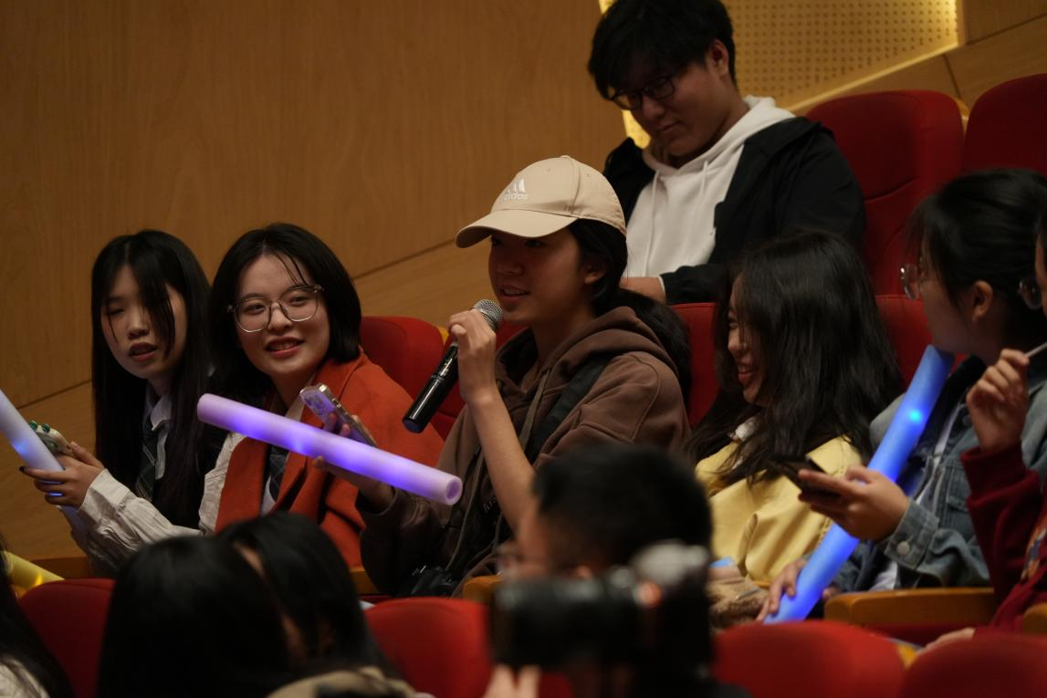精心为同学们准备了接歌词和反口令游戏,同学们踊跃参与,多位同学一展歌喉,歌声让大家直呼:“哇哦!”在欢声笑语中,游戏圆满结束,为获得胜利的同学颁发了冠军大礼。