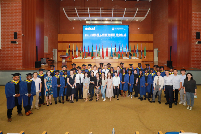 2019级援外学历学位教育(软件工程硕士)项目结业仪式在泰达校区杏坛报告厅举行。世界工程组织联合会主席龚克,商务部培训中心项目管理一处处长哈雨,天津市商务局外经处副处长辛刚出席仪式。