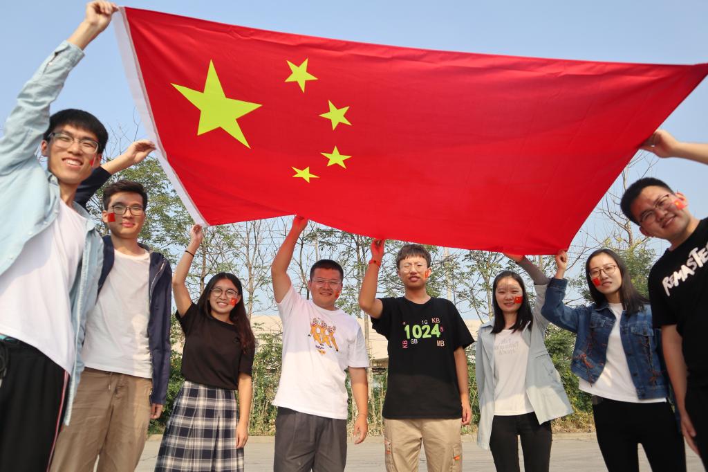 院长张玉志、教职工群体、学生党员群体、共青团员群体、新生班集体等纷纷参与活动并“晒”出与国旗的合影。