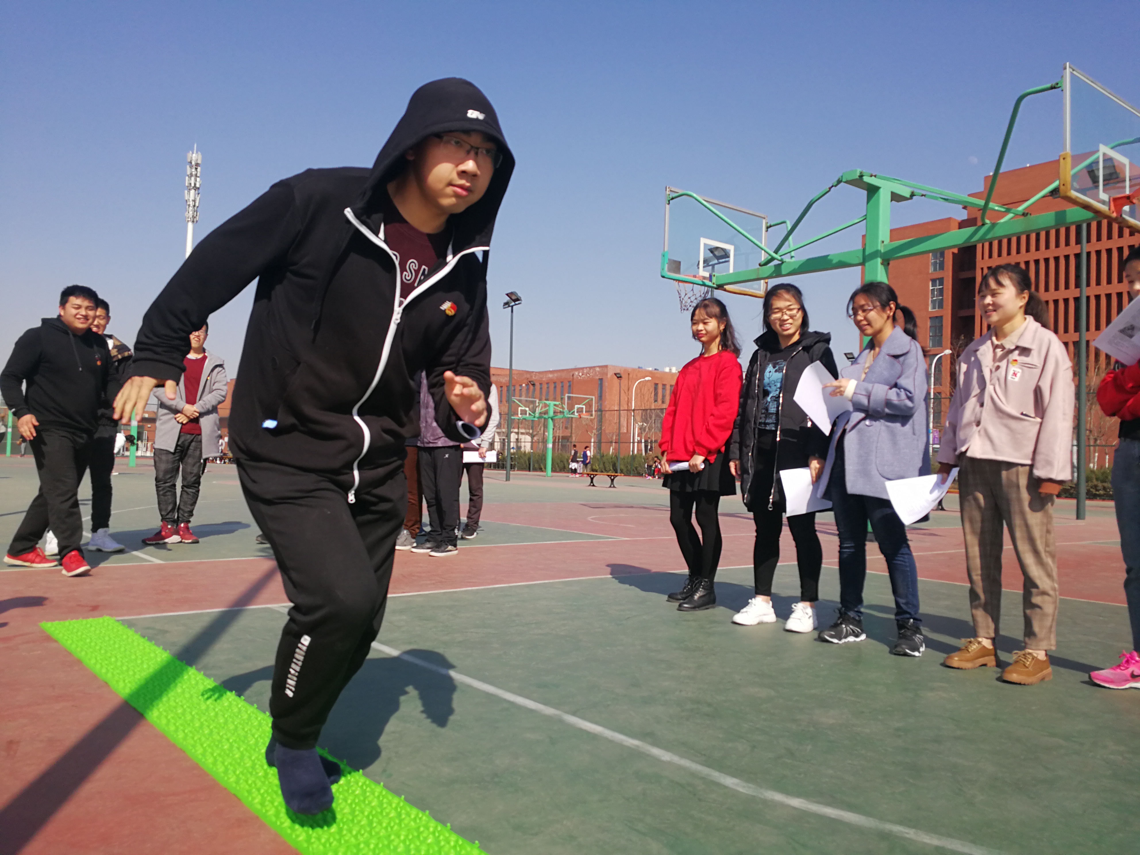3月16日中午,同学们在津南校区理科操场以“紧随习总书记步伐,追梦为祖国添助力”为主题进行了趣味素质拓展活动。活动以成长历程为轴,分成“梦的种子”、“坎坷追梦”、“梦想绽放” 三个主题,通过挑战搭牌塔、限时回答C++编程题、组队搭桥等专业知识与趣味运动紧密结合的形式,让同学们体会百折不挠、坚毅进取、团结互助等南开人应具备的优良品质。活动后,班级团支书,2018级本科生郝可欣说到:“组织本次素拓活动,旨在调动同学们的积极性,增强班级的凝聚力,激励软件学子把爱国心民族魂同自身的追梦道路融合起来,勇于创新,敢于突破,切实践行总书记“敢于有梦,勇于追梦,勤于圆梦”的嘱托。