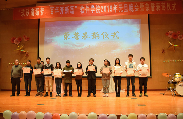 张玉志在新年致辞中回顾了学院在过去一年的成就,表达了对软件学子新一年的期盼和美好祝愿。随即,学院领导对本学年在学术科研、社会实践、文体活动、学生工作等方面取得优异成绩的同学进行表彰颁奖,鼓励同学们在新的一年取得再创辉煌。