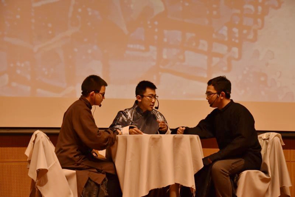 伯苓话剧社表演原创话剧《公为津门南开》,此剧讲述了老校长张伯苓为南开和中国教育尽职尽责、劳心劳力的一生。饰演张伯苓老校长的演员、2018级本科生弓世杰激动地说:“饰演张伯苓老校长这一角色给了我很大的压力和动力。在排练过程中,老校长对我而言不再是一个符号、一个名字,他有欣喜也有绝望,有严厉也有慈爱,但无论如何,他办学为公的信念始终未变,这让我对南开精神有了更为深刻地认识。”