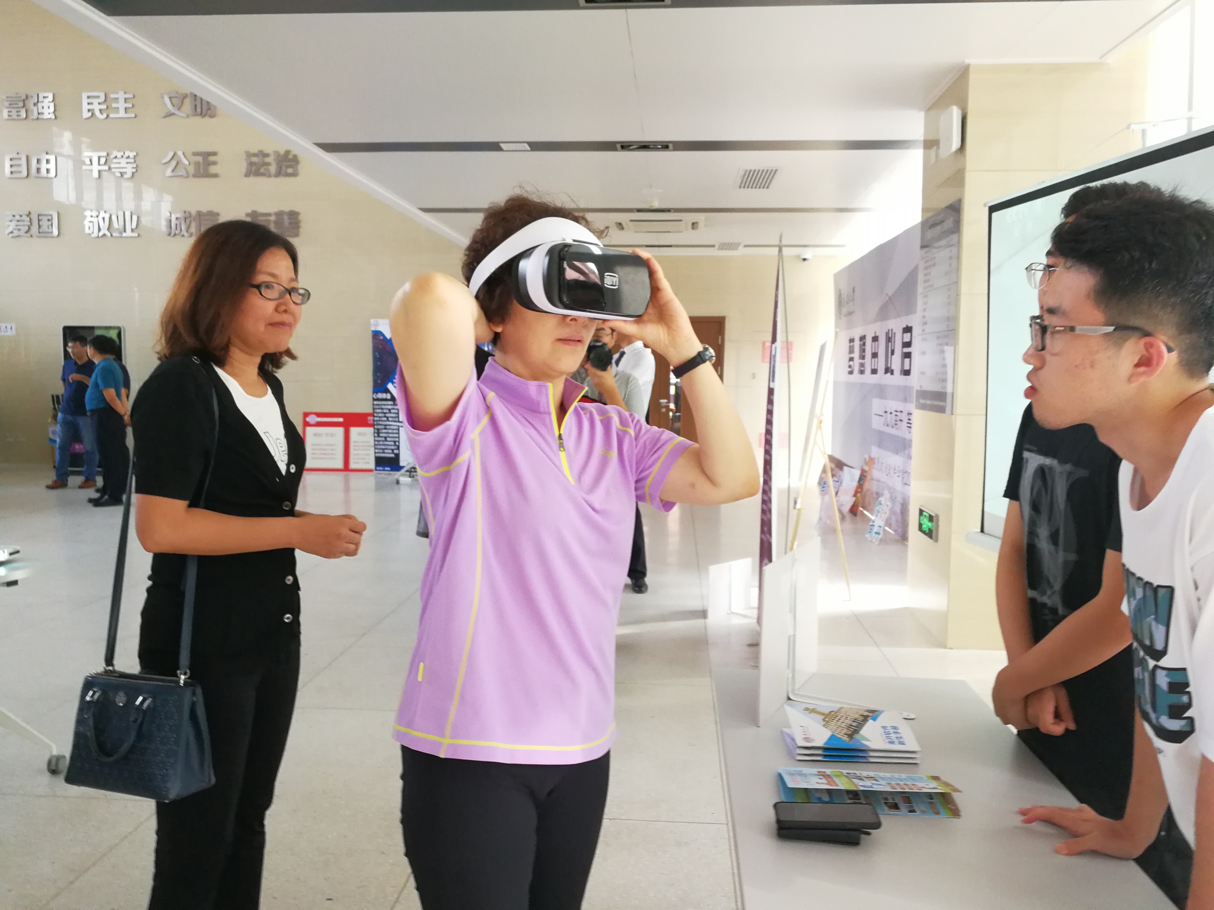 八里台校区VR体验环节,新生和家长们纷纷带着好奇在志愿者的指引下使用VR眼镜,身临其境地欣赏八里台校区的美丽景色,通过虚拟现实技术,实现新生们感受八里台校区浓厚历史底蕴的愿望,了解南开,爱上南开。