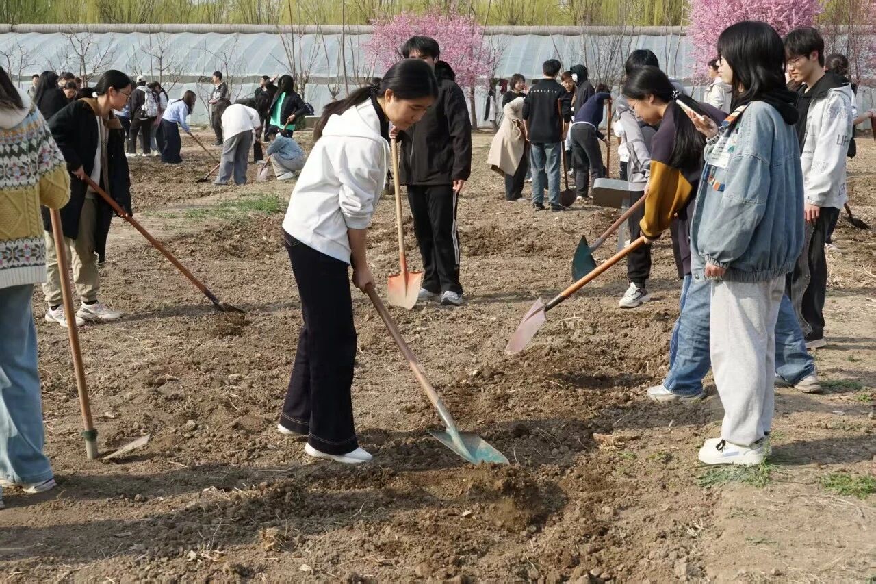 活动当天天气晴好,同学们分工明确、配合默契,有的翻松土壤,有的清理杂草,有的播撒肥料,大家相互帮助,边干边提醒注意安全,很快将地块整理完毕。