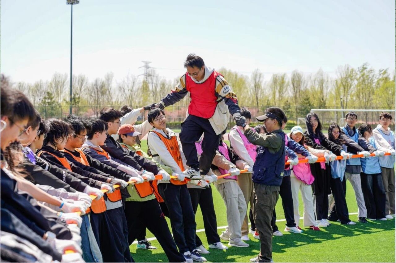 团队能量项目将整场活动推向高潮,工作人员将动力绳两端连接,全体同学伸直手臂、紧握绳索,齐心协力拉成一个整齐的圆圈,随后缓缓坐下,稳稳维持住动力绳圈。随后,在保护员的全程守护下,几位学子站上绳圈,在大家的共同支撑下直立匀速行走,每一步都承载着团队的信任与力量,每一次稳稳的支撑都彰显着团队的凝聚力。